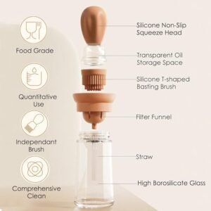 - Easy to Clean – Each part can be disassembled and cleaned separately, and the oil dispenser is easy to assemble. The brush can also be used alone, and it is also convenient to apply ketchup, chocolate sauce, and peanut butter